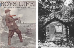 Well it appears that the log cabin was Howard Upham’s Boy Scout project. At the time, scouts were building log cabins all over the country. The piece in Boy’s Life reads: “It was my desire, in the first place to build a log cabin which would accommodate two or more fellows. Having carefully figured out the size desired, I cleared a piece of ground twelve by fourteen feet, located near the shore of a lake. Dead pines and oaks standing in the nearby woods afforded the necessary material for the cabin. I began building the cabin so late in the summer, and so near school time, that I got only as far as laying the foundation, which was of oak timber. I selected an oak foundation for the reason of greater durability.”