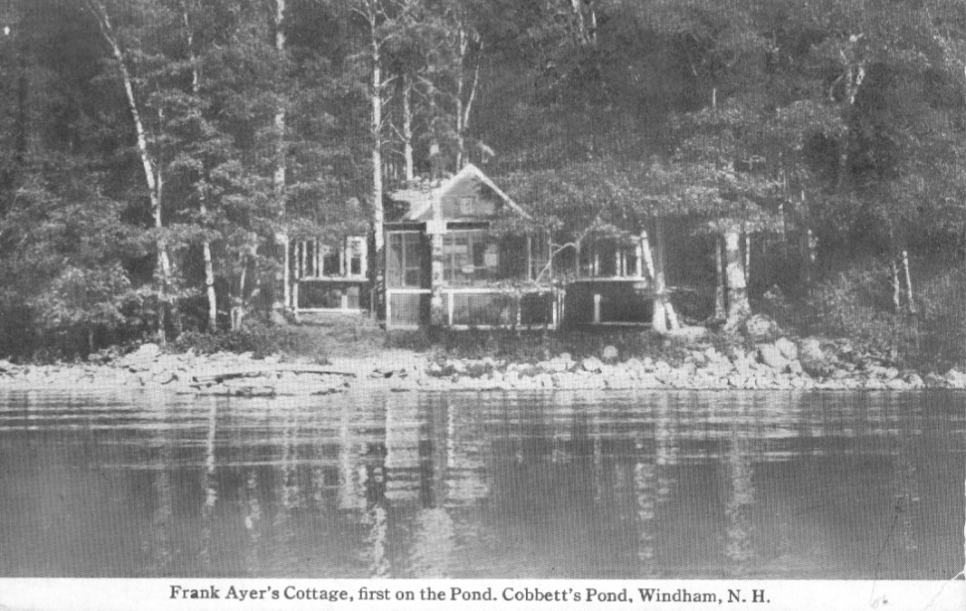 “Frank H. Ayer, who recently died in Nashua, leaving a large estate and no immediate family, was the owner of ‘Pioneer Cottage,’ the first summer camp on Cobbett’s Pond, which he and others built in the spring of 1886.” (Died January 12th)