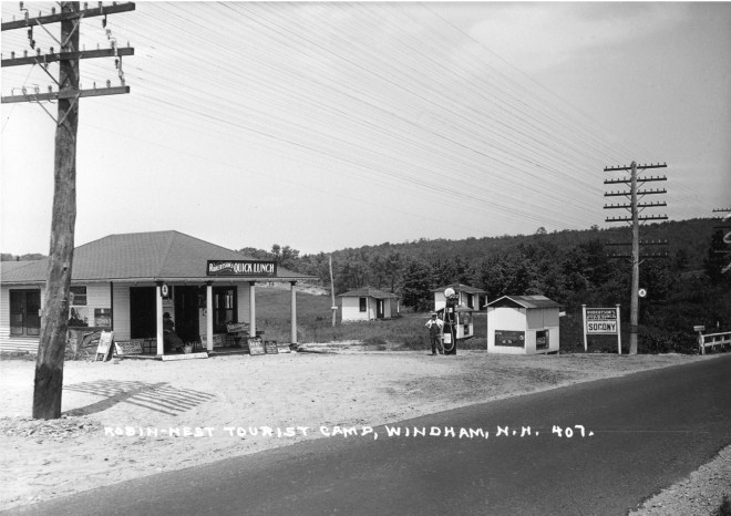 The Robin’s Nest Tourist Camp was established by Mooney Robinson. It was another tourist operation that opened as a result of automobile travel and the improvements to Route 28 in Massachusetts and New Hampshire. It was soon one of the main routes to the lakes and mountains. Later the business was expanded. Rural Oasis states, “A well-known place that should not be forgotten (because it was the watering hole of the local establishment including Maurice Armstrong and George Dinsmore Sr.) was Mooney Robinson’s on Route 28 where the Robin’s Nest Motel is today. Mooney Robinson’s Restaurant and Beer Parlor was the official business name. It opened in 1928, closed in 1944, and was the most colorful places in town. It was a popular rendezvous for local people to discuss politics and other subjects. The restaurant had the first beer license. As the liquor flowed, so did the stories. From all reports no place came even near to replacing it.” My father tells a story of his father and Maurice Armstrong at Moody