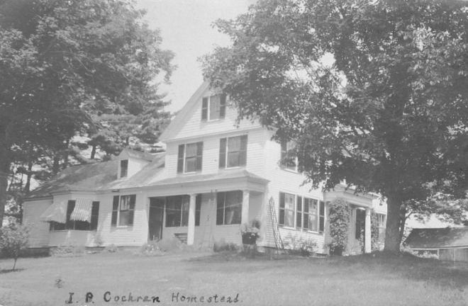 “June 27, 1917: Monday night shortly before midnight , the house of Town Clerk and Selectman John E. Cochran near the center of town was destroyed by fire with most of its contents. The barn and connected sheds were saved, and from the house the town records and a small amount of clothing and furniture. It was a narrow escape from a still more serious catastrophe, as Mrs. Cochran had retired later than usual and had not fallen asleep when she was startled by the smell of smoke and discovered the roof of the ell near the kitchen stove was all ablaze. Mr. Cochran and son, Olin, were quickly aroused from slumber , and if help had been near the flames could probably have been extinguished. Attempts to reach neighbors by means of a telephone failed and before help arrived it was impossible to rescue much of the house. The origin of the fire is mysterious. As the chimney from which it must have caught was a new one, built only a few years ago, and there had been only a small fire in the kitchen stove early in the morning. The house was a fine old mansion built by James Park many years ago and occupied since 1871 by the Cochran family. It was filled with furnishings, many of which money cannot replace. Every kindness has been shown by the neighbors to the afflicted family, who have found temporary house-keeping quarters in the parsonage nearby.”