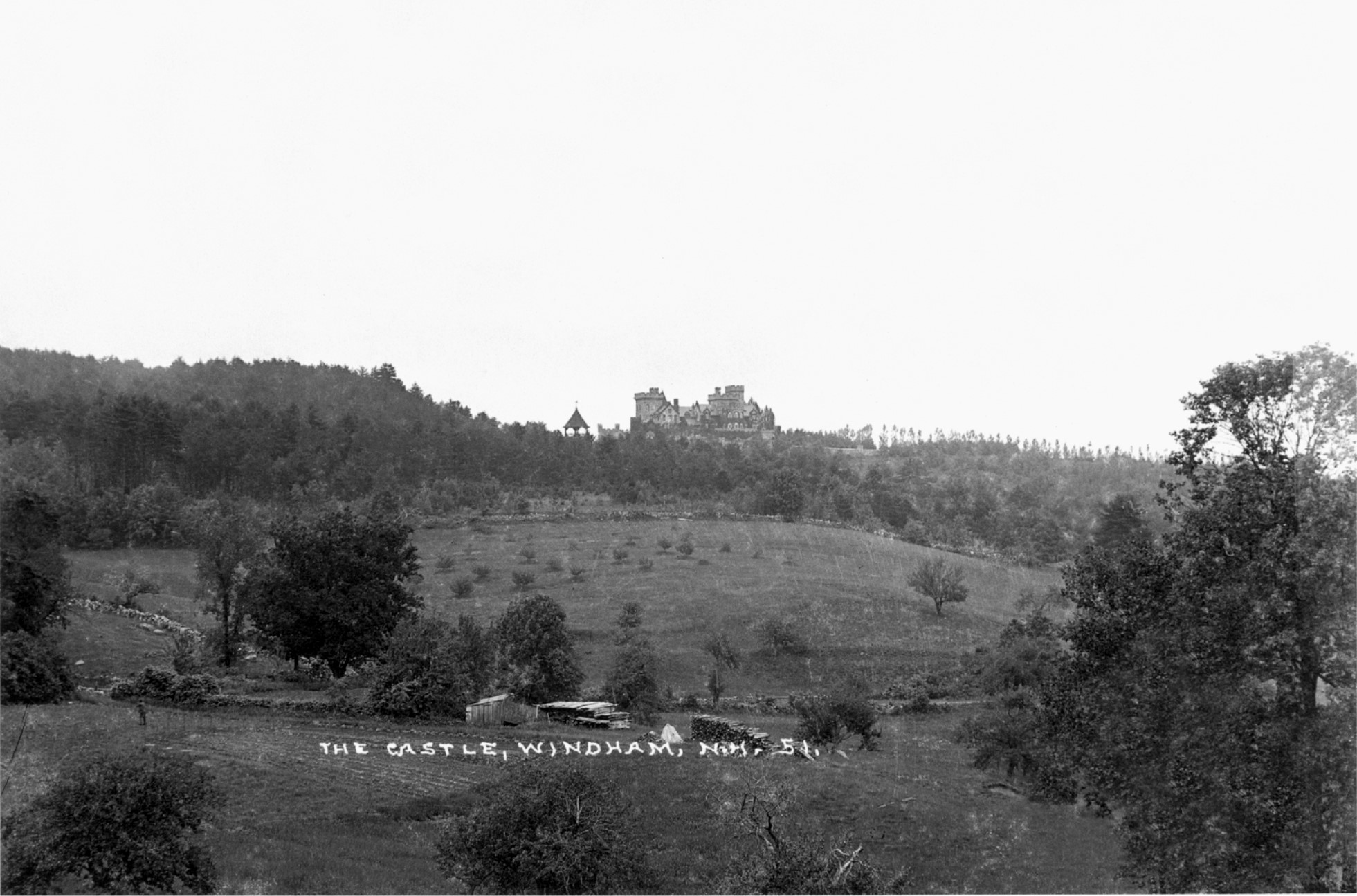 This is an early view of Searles Castle in Windham. I believe it is taken just below Indian Rock Road, running through the photograph, which can be can be detected by the stone walls just above the wood piles. With most of the land in open fields the view from the castle towards Cobbett’s Pond were just spectacular. Of course, this scene today has been totally obliterated by the interstate 93 and Route 111 which tears through this location.