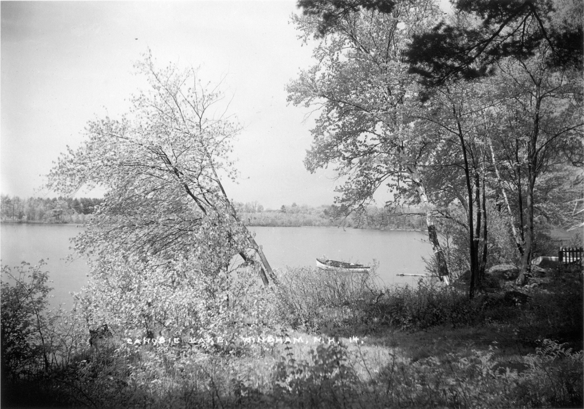 In the Eastern Illustrating Collection of photographs are several of Canobie Lake. They are interesting because they are taken from West Shore Road, looking toward where Woodvue Road is today. You can seen in the photographs all the new growth trees on the opposite shore. It is hard to imaging that long length of water frontage with no development.