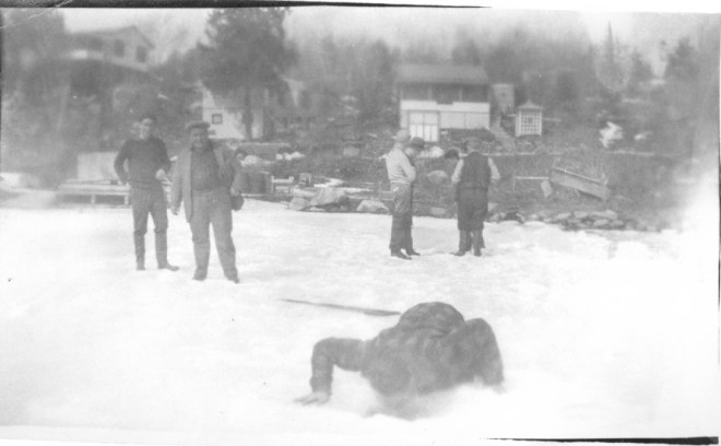 Mimie Pearse Cianciulli loaned me these family pictures many years ago and I believe I posted them in the Windham Independent previously. They are very interesting in that they show the shore and cottages along First Street near Community Beach sometime between 1929 and 1933. The people in the photograph were members of the Pearse and Perry families. They were cutting ice to put in the ice house to use for refrigeration the following summer. It seems as much fun as work!