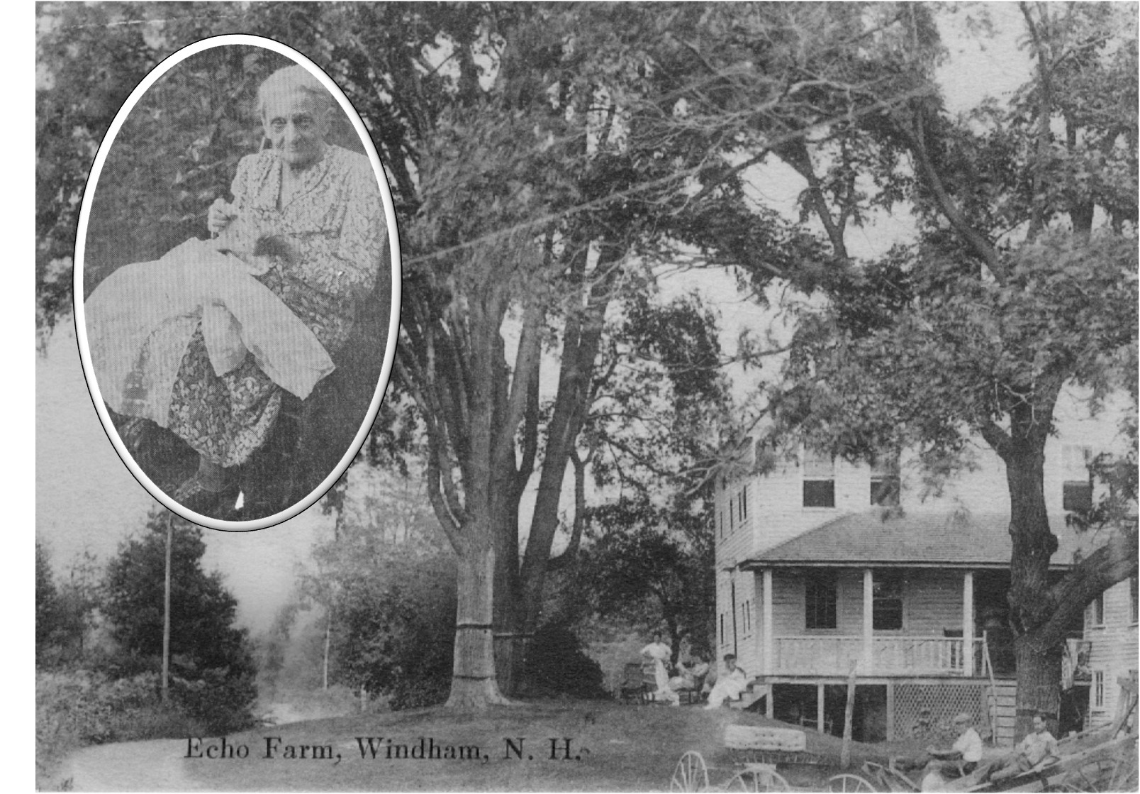 Mrs. Gilson is shown above knitting for the Red Cross during World War II. She and her husband purchased the J.C. Armstrong farm in 1898. It is pictured above and below and was located on Haverhill Road between the Center and West Windham. She was the librarian at Nesmith Library from 1922 until 1943. She was born in 1869 and died in 1950.