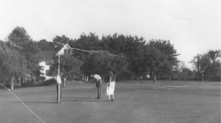 Long before Windham Country Club was ever conceived, there was a golf course in Windham that offered views of Cobbett’s Pond. Rural Oasis states that, “Several years before the construction of Route I-93 and the influx of new residents, Windham’s people could hike, swim, skate, ice fish and toboggan in town (Or ride a dirt bike on miles and miles of old wood roads, like I did on my beloved Honda 70.) In fact there was even a golf course and summer playhouse, both located on Range Road. Ed Walkey from Cliftondale, Massachusetts , owned the former Lakeview Boarding House. During this period he started Lakeview Golf Course, the nine-hole course especially popular with summer visitors. The pro shop was located under the barn. The number one green was on the other side of Armstrong Road. When the southbound lane of I-93 was constructed the green was abolished for the new entrance of Armstrong Road. The golf course was a family business where Thyra, Ann, and their brother Allen worked with their parents taking care of the greens and the shop.”