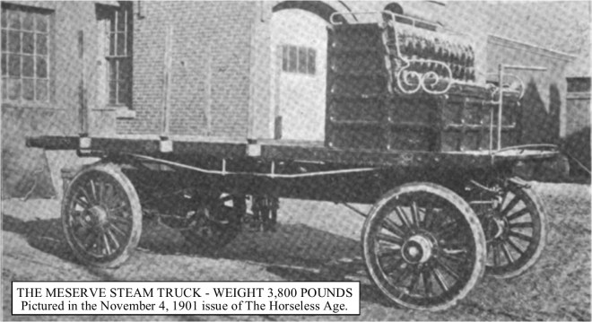 “In 1901 the Pemberton Mills, in Lawrence, Massachusetts, engaged him to build a truck. This was steam driven, which seemed at that time to be the most dependable driving power. It was the first practical commercial truck in that section, and we have been told that it was without doubt one of the very first — if not the first — practical heavy commercial trucks to be built anywhere. A picture of it was published in The Horseless Age.”