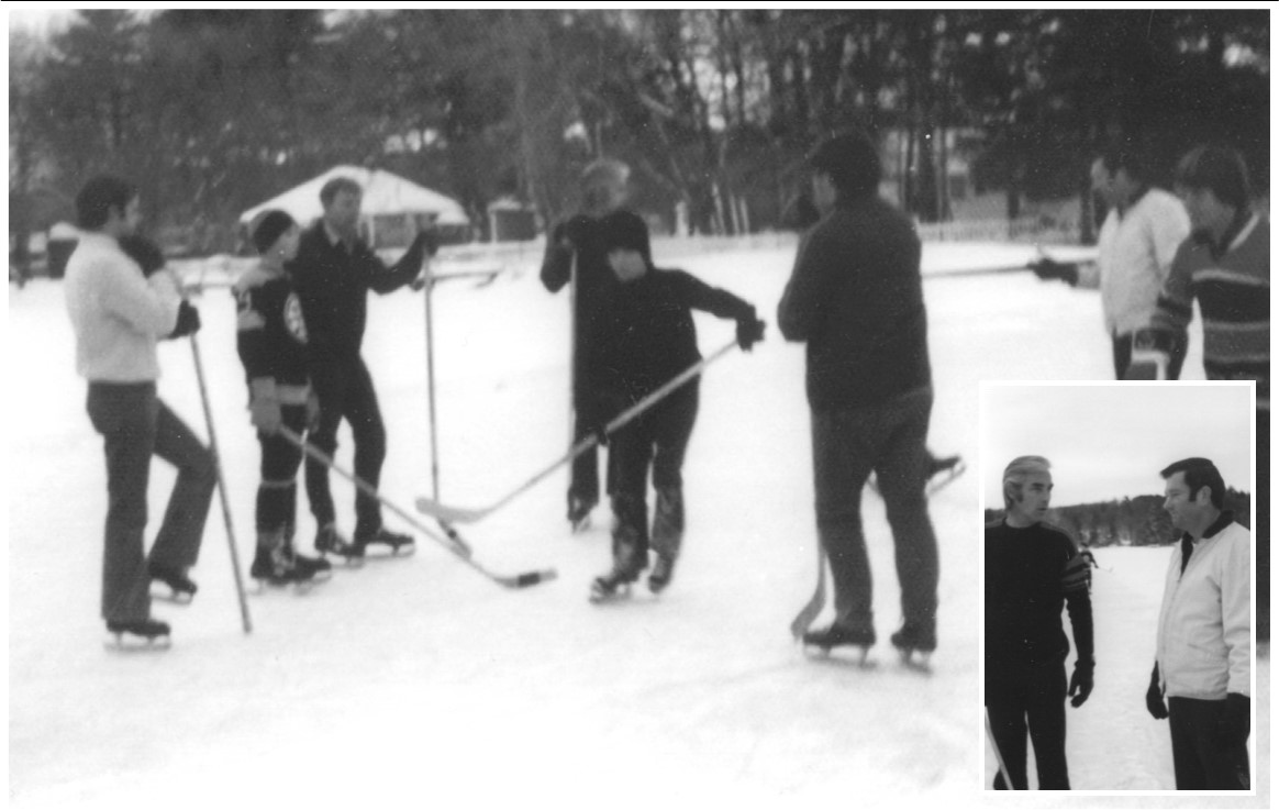 In 2020, with variable temperatures, we’ve seen a slow start to winter activities on Cobbett’s Pond. Pictured are a group of ice hockey players in front of Bella Vista in the 1970’s. Shown in the insert are Tom Kane and Joe Culleton. Photographs courtesy of Charlene Kane.