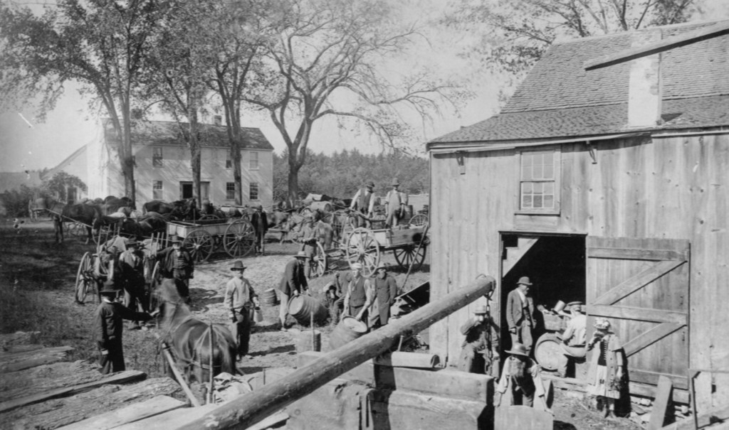 The Kendall Mill was located on the Windham-Londonderry line and was operated as a grist, saw and cider mill. In the fall, farmers would bring their apples which were then pressed to make cider. Making cider was a social event for the community where friends and neighbors would meet and discuss the latest gossip and politics, face to face.