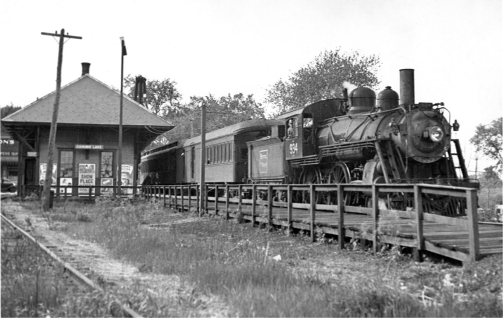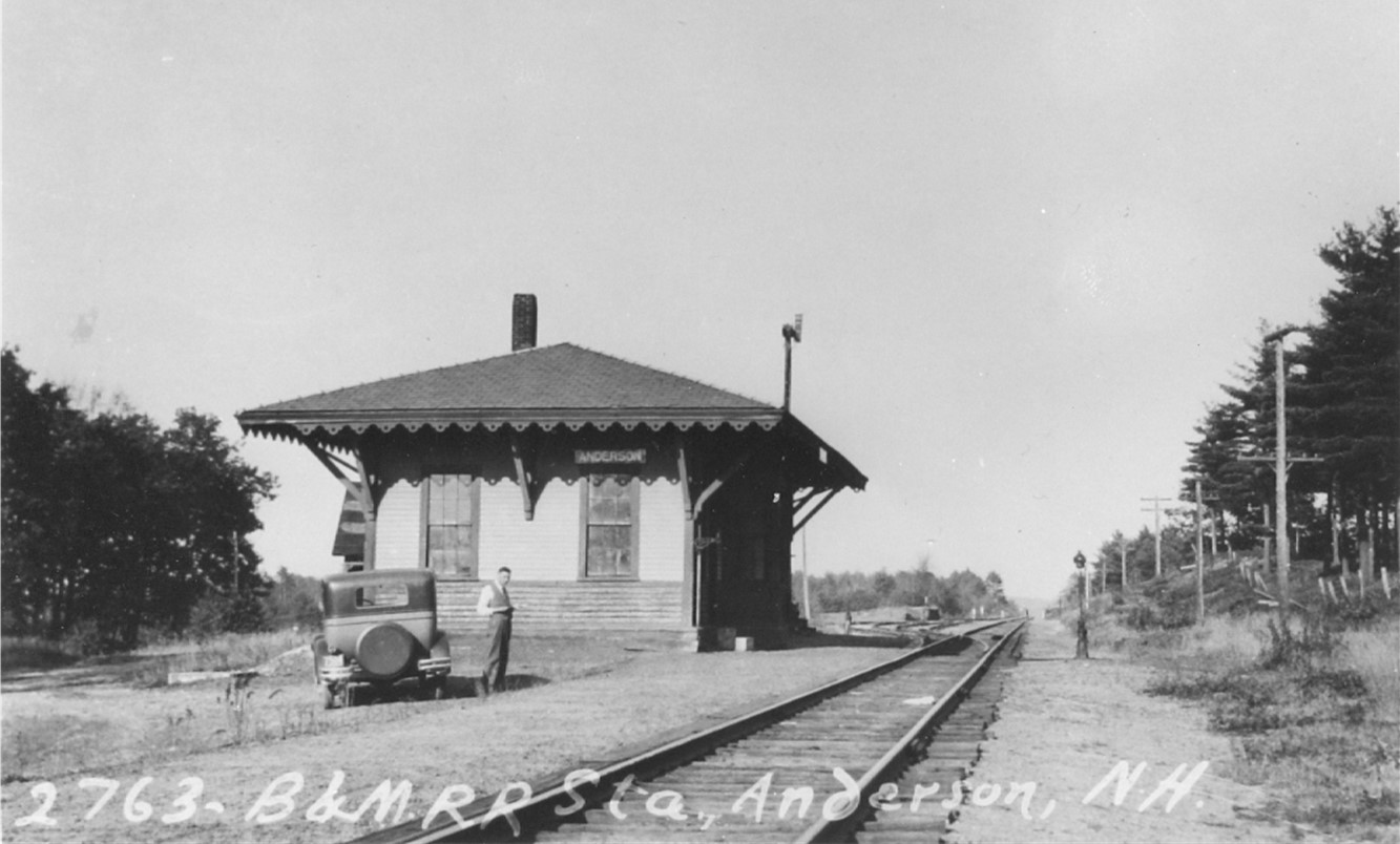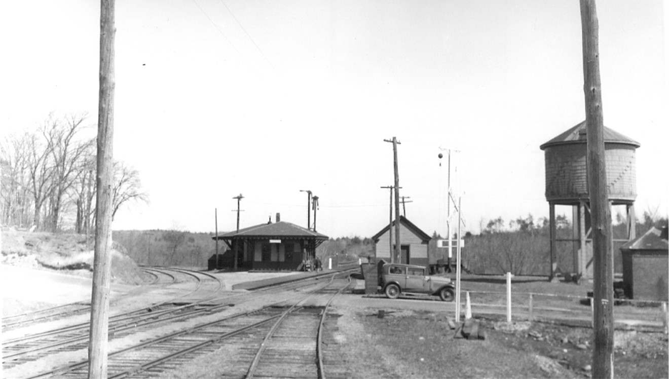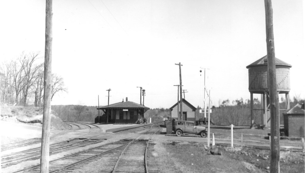These interesting photographs show the railroad system in Windham just before the discontinuance of passenger rail service by the B&M Railroad in the 1930’s. If you’ve walked on the Windham rail trail you will recognize the top two photographs of Windham Junction. Below left is the station in West Windham which became Anderson Station. It was a originally a station house for the Nashua and Rochester Railroad, which crossed the Boston and Maine Railroad at Windham Junction. Bottom right is Canobie Lake Station. The nemesis that slew the railroads is pictured in the form of the automobile being used by the surveyor for the Boston and Maine Railroad.