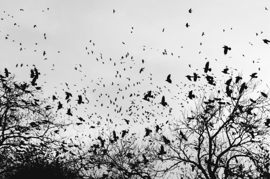 “Thousands of crows gathering together in the same place every night make easy pickings for predators like Great Horned Owls. As a result, American Crows gather at a secondary location, or “staging area,” before continuing on to their real roost after nightfall. American Crows will further confuse predators by changing the location of the staging area, or even the roost itself, every few nights. Some human observers confuse these staging areas for the actual roost, not knowing the roost is several hundred feet to several miles away— unless they stay after dark to watch the crows move a second time.”