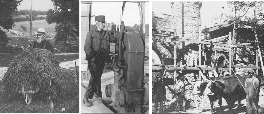John H. Dinsmore wheeling in the hay – Gate-keeper at Windham Depot – Stone masons laboring on Searles gate