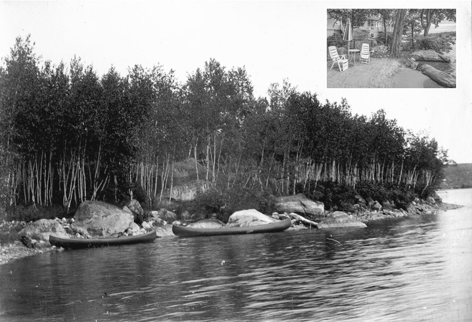 Look at the hundreds of little birch trees covering this point and lining the shore of Cobbett’s Pond. The huge boulders are also interesting laid down by the glaciers. From Mr. Brooks diary we get an idea of where Birch Point was located. “June 30, 1900: The pond was covered in white caps…Afterward Howard went out alone and caught a crab and lost both oars while the boat went at a rapid rate toward the head of the pond before the wind. They went ashore at Birch Point and he borrowed a pair of oars and came home for an extra pair. Then he went after his own. August 18, 1900: A beautiful day. Warm but not hot. Mary and I took a picture of Indian Rock and then Harry and I took one of the canoes to birch point beyond Cobbetts’s Rock.