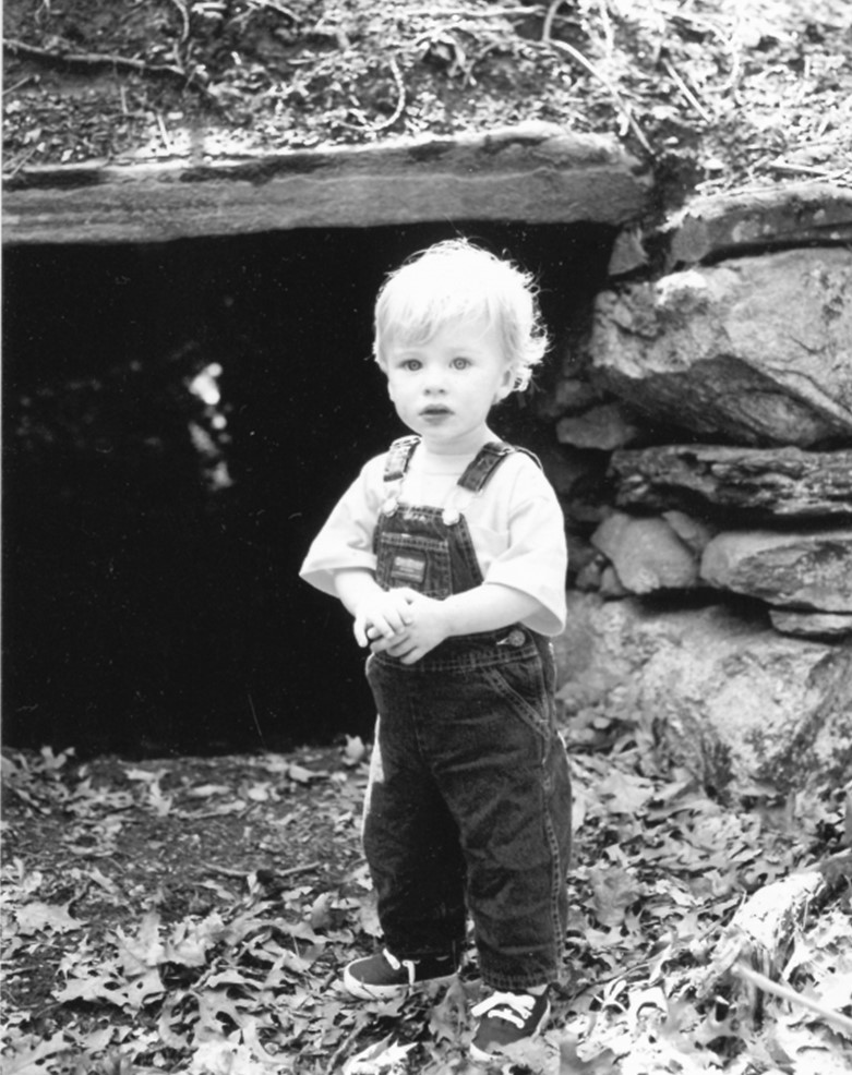 Matt Dinsmore at the ruins of the Dinsmoor-Hopkins Farm near the old Nashua & Rochester railroad line. The foundations of the house and barn are still located on the property and there is an apple tree that blooms in the woodlands.