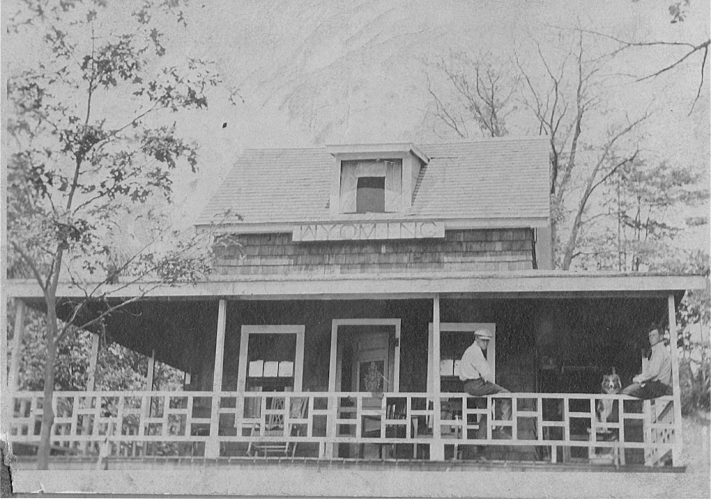 The “Wyoming” a camp on Cobbett’s Pond owned by George Dinsmore Sr. and named in honor of the place that always lived large in his heart. It is said that he once shot a whisky bottle out of the hand of a resident that lived across the pond from this very porch.