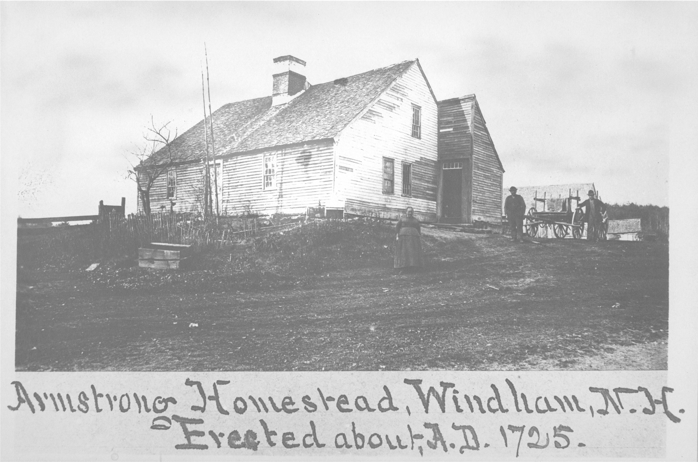 “Whom Robert Armstrong married, or when he died is not known. He is undoubtedly the ancestor of the Armstrongs in Windham. Tradition says that the emigrant ancestor, of Scotch blood, emigrated from Northern Ireland, bringing two children with him. One died on the passage, which he buried in ‘the deep, deep sea.’ He often alluded to this painful experience as the greatest grief of his life. This could not have been John Armstrong, as he was born in 1713; came to America when a boy, and his oldest child was born in Windham; Sept 8, 1738. It must have been Charter Robert Armstrong, the proprietor, who was here with the first settlers in 1722, who lost his child on the passage, leaving an only son, who was John, of Windham, 9 years of age in 1722, If stronger evidence is needed, it is found in the fact that Charter Robert Armstrong’s Christian name has cropped out in successive generations, and is now honorably born by a living representative in Windham”