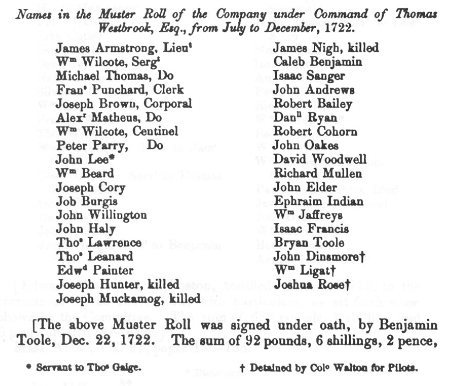 ” Interestingly, James Armstrong (Windham Robert’s brother) had been made a Lieutenant by July of 1722, in the Company under the command of Col. Thomas Westbrook. John Dinsmoor, was also in this company from July to December 1722, having been conscripted as a guide after he had been captured by Indians earlier that year. So old Ulster friends, John Dinsmoor and James Armstrong served together in this military company in Maine.