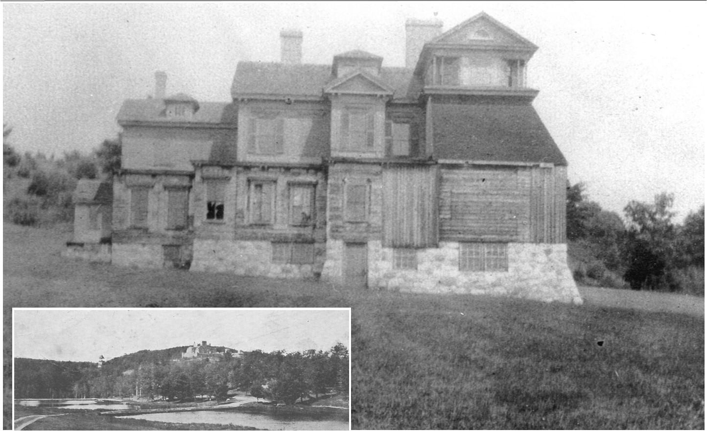 In 1904, Edwards Searles began making improvements to his estate in Windham. At first, the plan was to build on Jenny’s Hill which was the highest point in town. It seems that in Methuen the Tenny Estate looked down upon the Searles Estate and he didn’t want the same outcome in Windham. Unfortunately, Searles had to abandon his plan because the Jenny’s Hill site proved to be too far away from the railroad, where he shipped in his building supplies, at Canobie Lake Station. Will Harris in his newspaper column says, “Edward F, Searles is making great improvements on his estate on Jenny’s Hill. The large mansion house has been moved back a considerable distance to a higher site, commanding a grand prospect, and additions and alterations are being made.” Searles also built an observation tower nearby the house to take in the magnificent view of Cobbett’s and Canobie. In this photograph, the “mansion house” has been abandoned for the nearby castle and essentially left to collapse.
