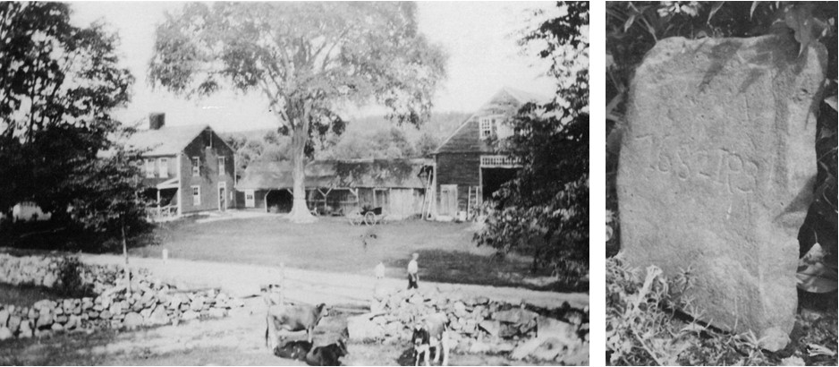 “…Our story now shifts ahead to the late 1930’s when a car full of young people left the rutted dirt road and crashed into a stone wall near the Zins Farm (former home of J.M. Worledge). In the process of removing the car several stones from the wall were dislodged and one or two never replaced. Later that fall, as Gene Zins was walking by this wall to go hunting, he noticed what seemed like lettering on one of these rocks. He brushed the dirt from it and rediscovered the stone mentioned by Mr. Harris in his news item. Realizing it might be important he took it into his home for safekeeping. Later the local minister, Dr. Earnest R. Lacheman, became interested in the rock and started to do some research., hoping to determine the meaning of the writing…He reported that he presumes it is a boundary marker, possibly a state line, as Windham was once part of Haverhill MA. He believes that the lettering IP3 could mean either “Independent Province 3” or “Imperial Province 3.” He asserts that the figure four mentioned in the newspaper clipping is a normal error and the correct lettering is 1682-IP3.” (Rural Oasis) Windham was founded after the Crown settled the border dispute with Massachusetts in 1740 and large tracts of land here thereby lost their valid title. Robert Dinsmoor, one of the first three selectmen, ended up with thousands of acres contained in the newly invalidated Rev. Cobbett’s grant. The Nesmiths, Morrisons, Cochrans et. al. all received large grants of land in the new town.