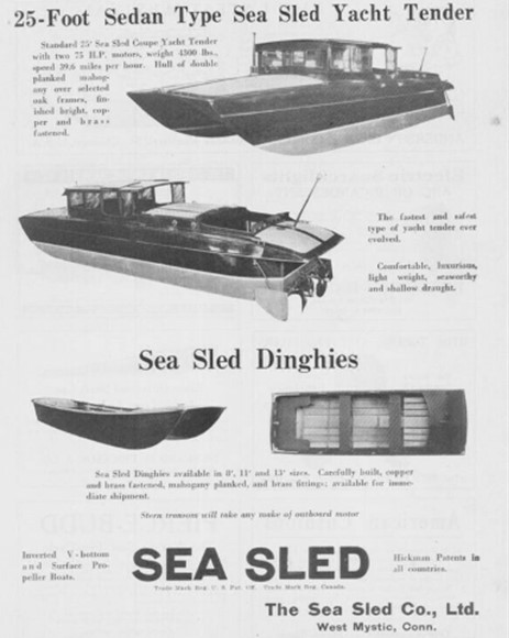 Fisher became consumed with the idea of a superior small powerboat hullform, and was determined to improve upon Albert Hickman’s notorious Sea Sled.” (So what the heck was a Hickman Sea Sled and why was it notorious I ask myself.